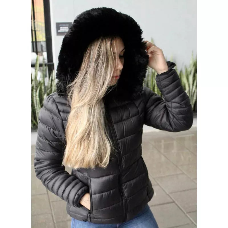 Um casaco forrado internamente de pelúcia e   tecido externo impermeável, resistente à água e com um design elegante
