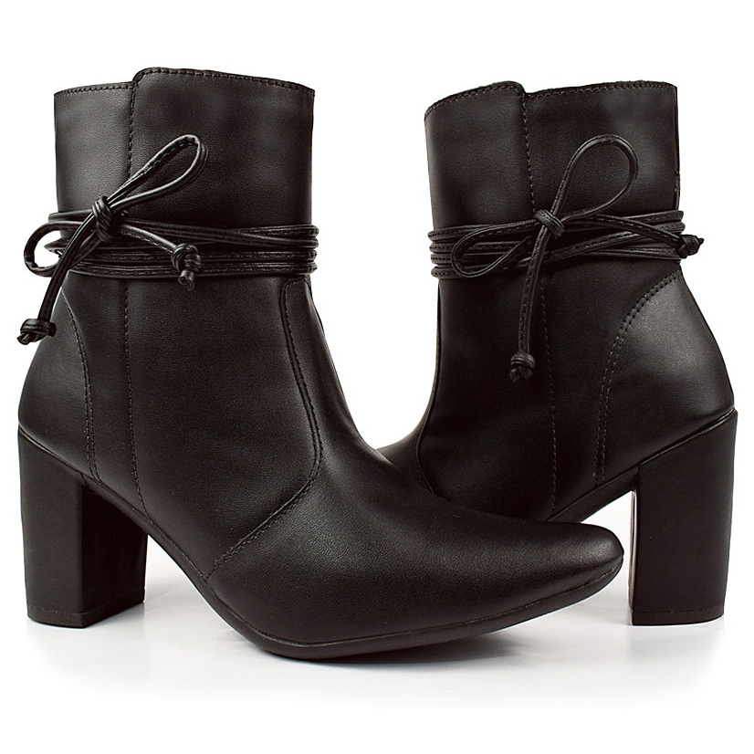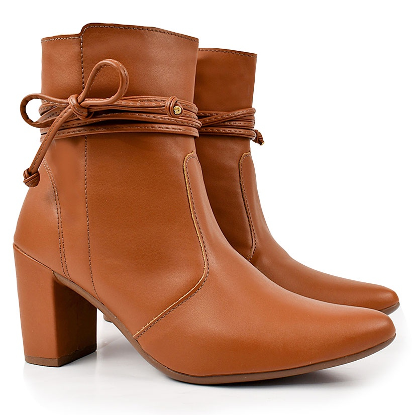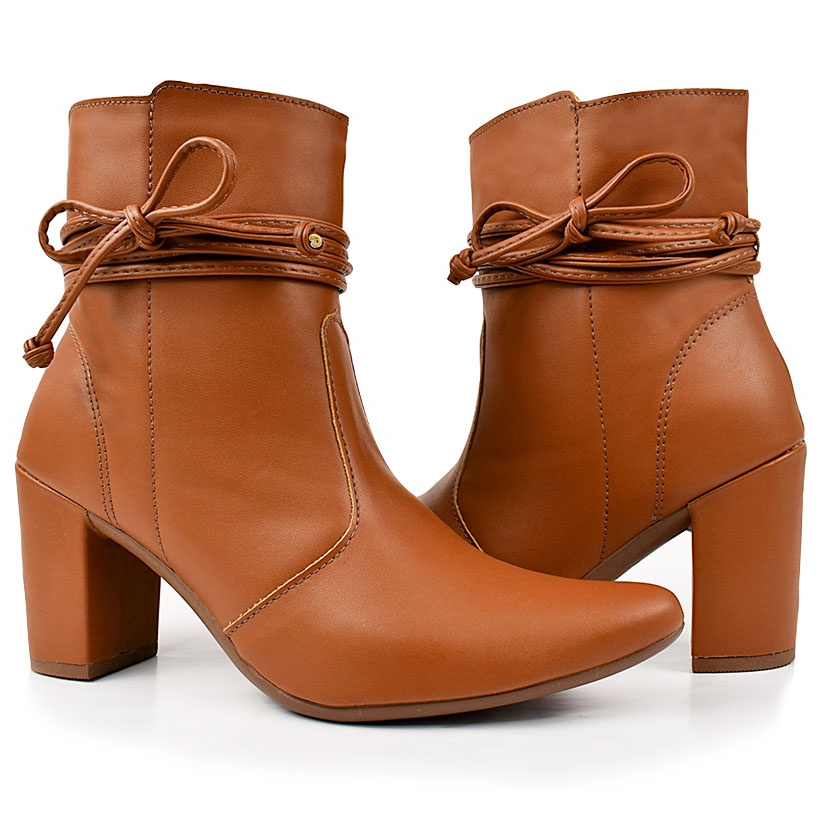 Bota Feminina bico fino salto fashion confortável de amarrar
