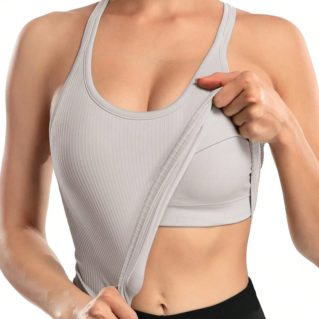 Camiseta Feminina Decote U esportiva com sutiã Emily