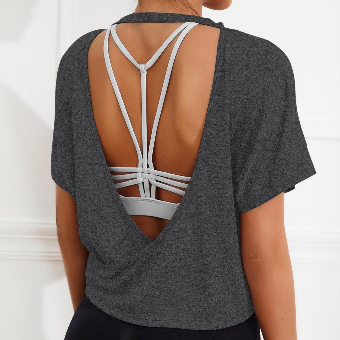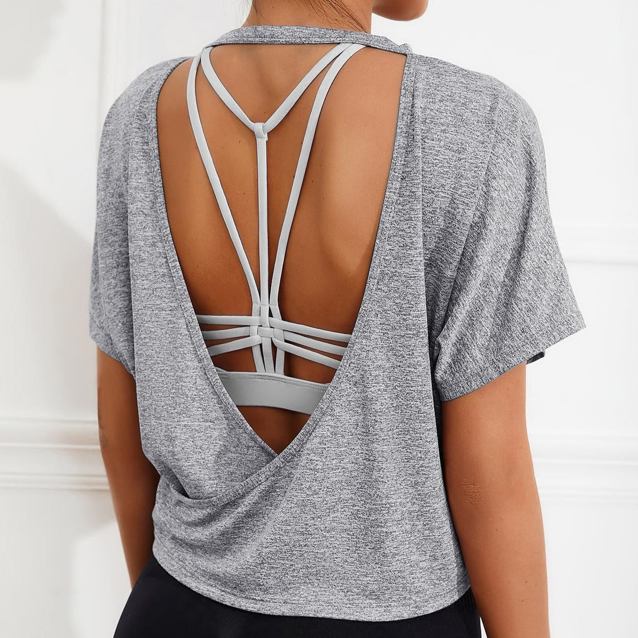 Camiseta Feminina esportiva Costas nuas Manga Curta Solis
