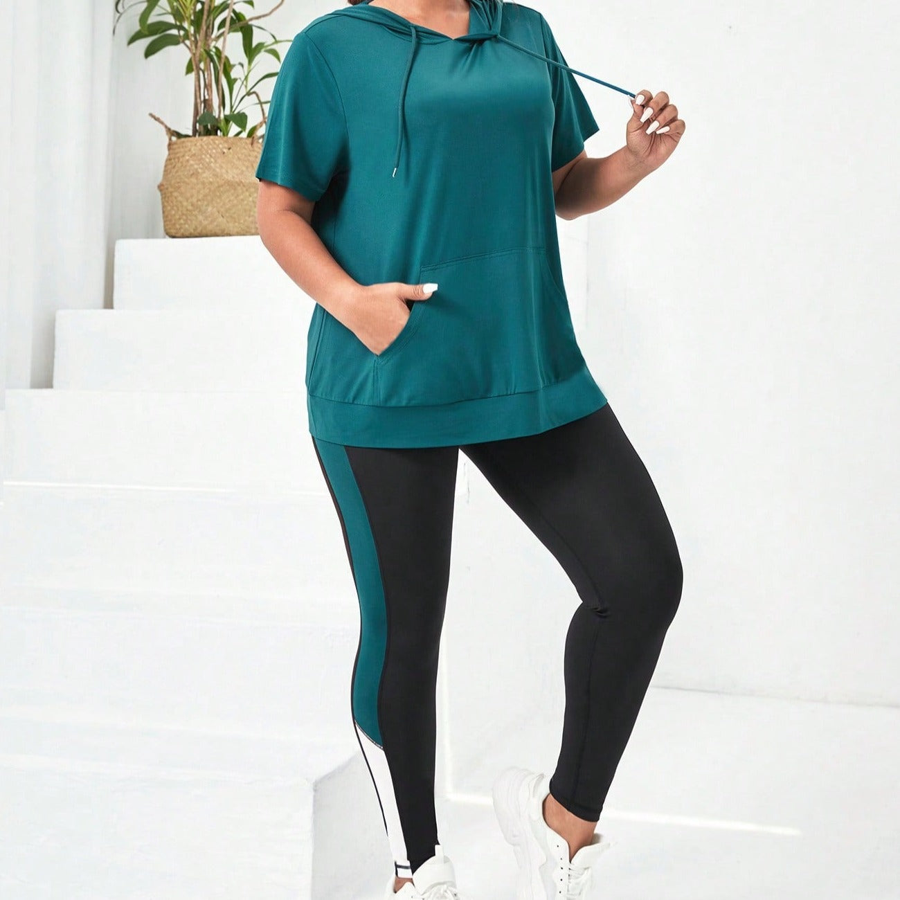 Conjunto Feminino esportivo com capuz e legging Alondra. Plus Size