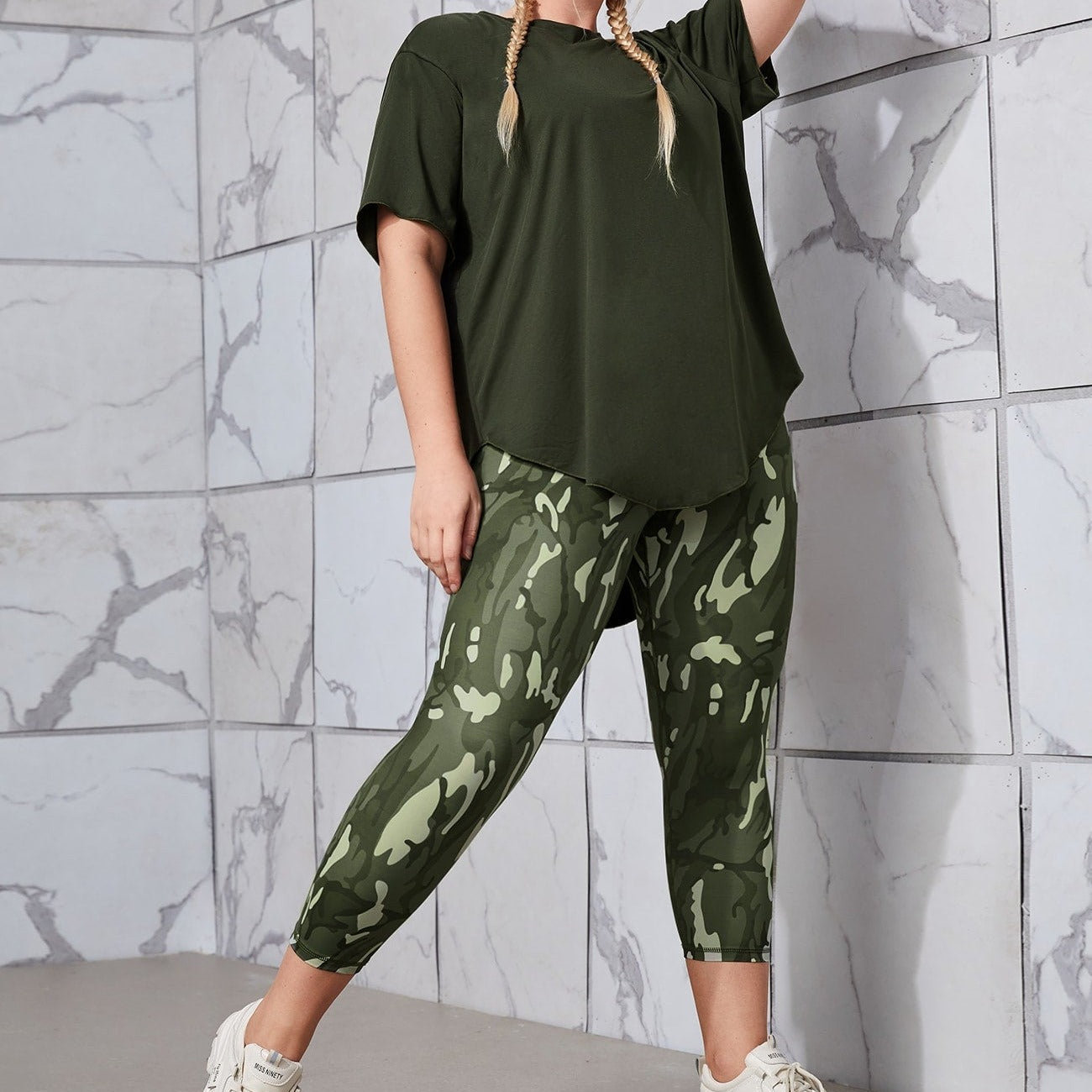 Conjunto Feminino esportivo Estampa Camuflagem Manga Curta Milly. Plus Size