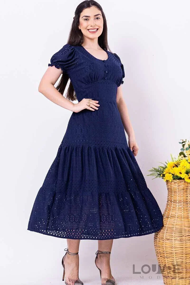 Vestido Azul Marinho Malha Laise forrado