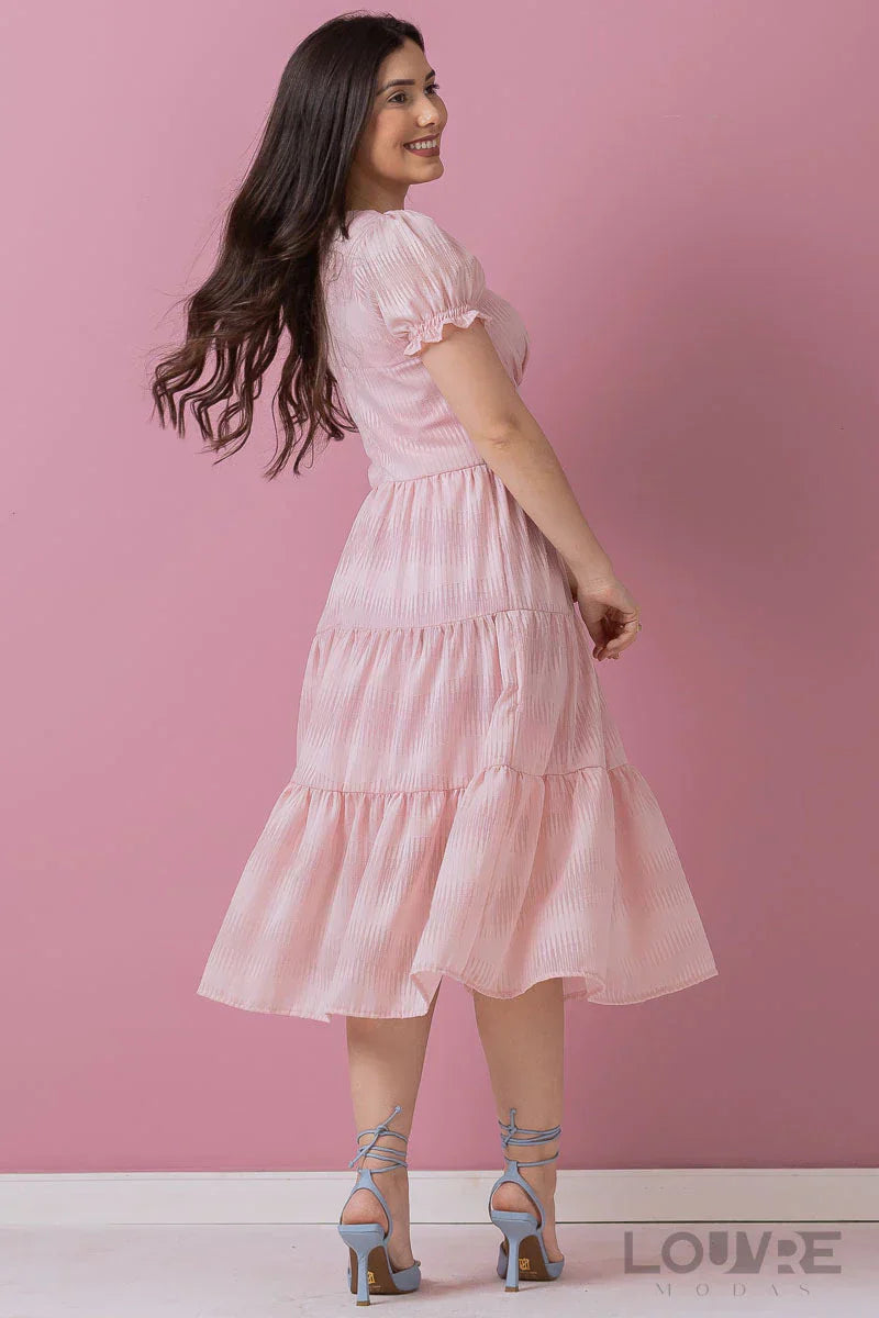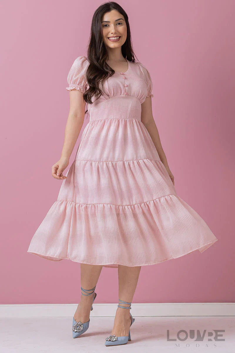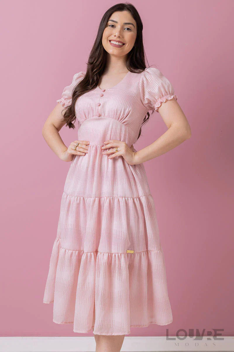 Vestido em Chiffon Com botões fakes