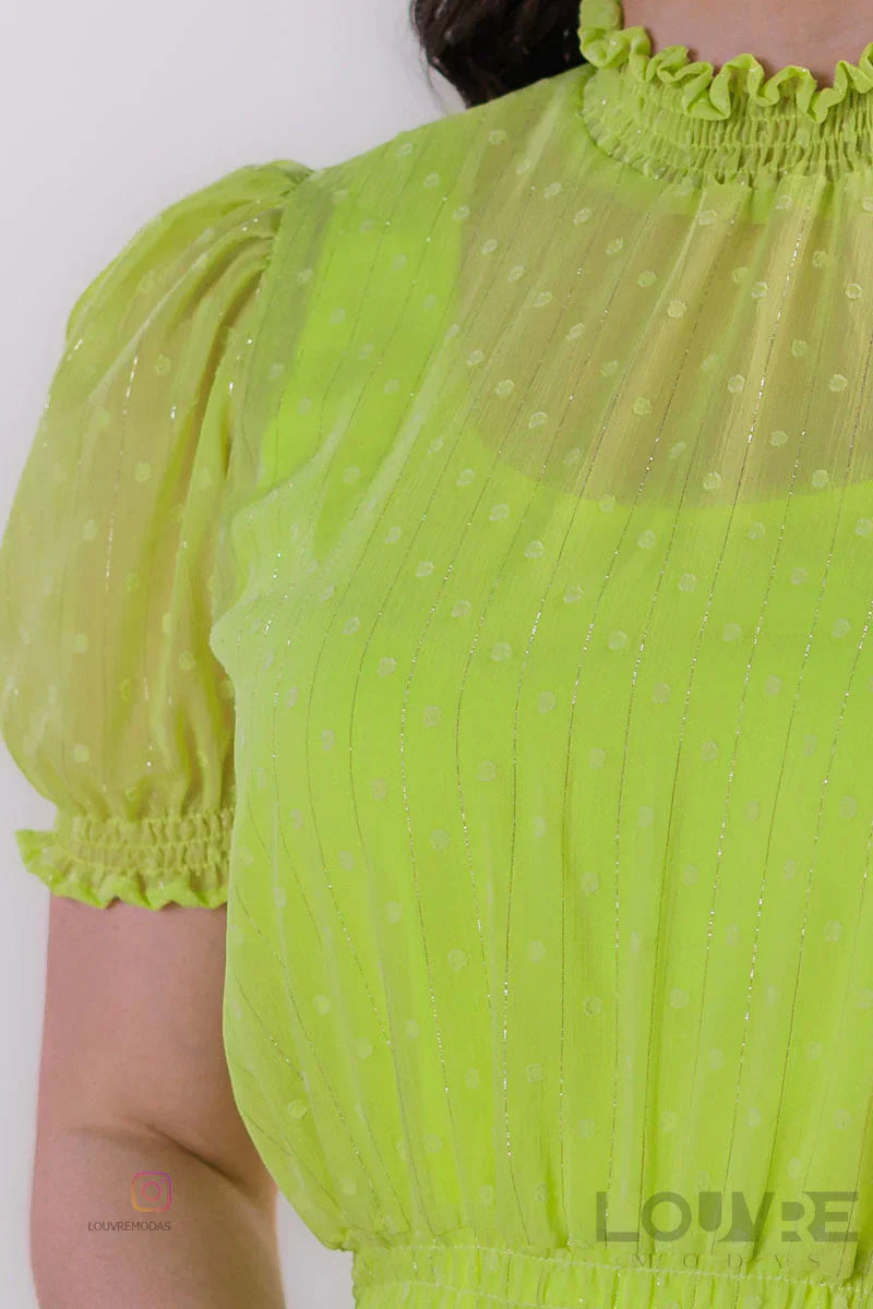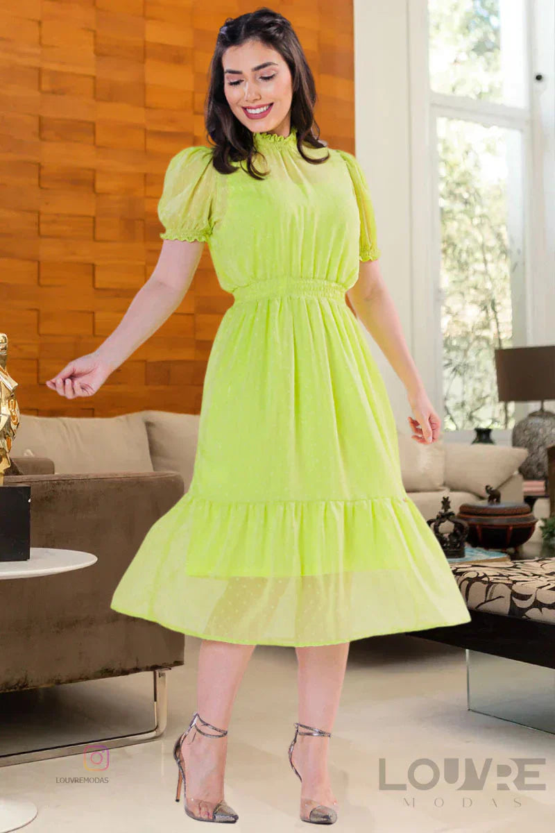 Vestido em Chiffon com Tecido trabalhado