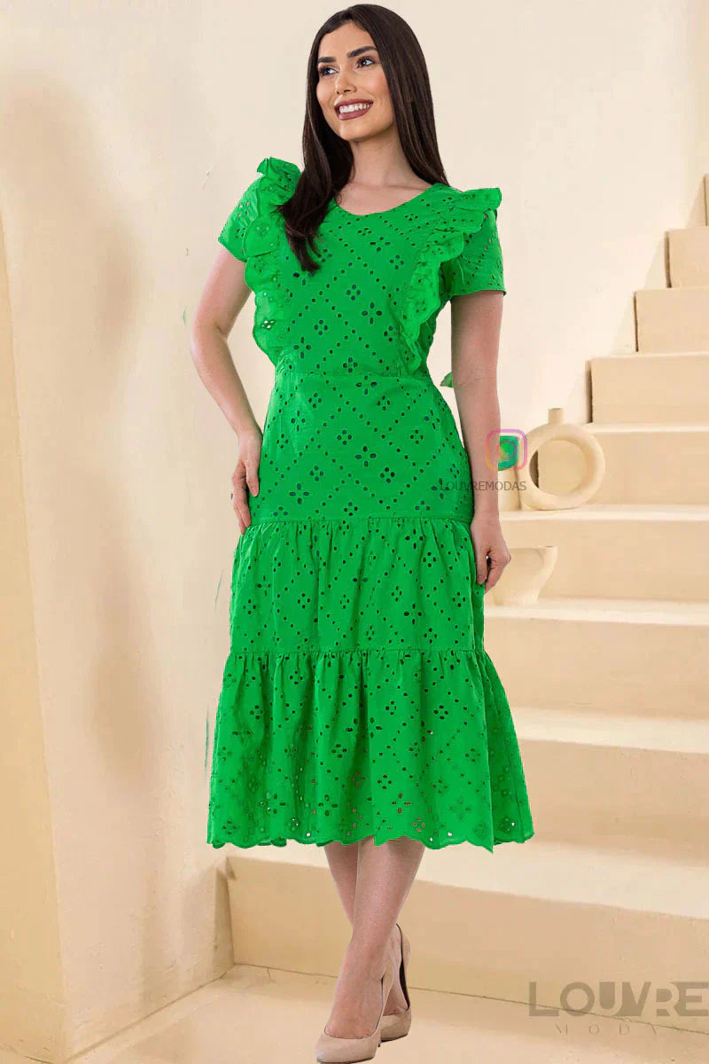 Vestido em Laise com detalhes no busto elegante